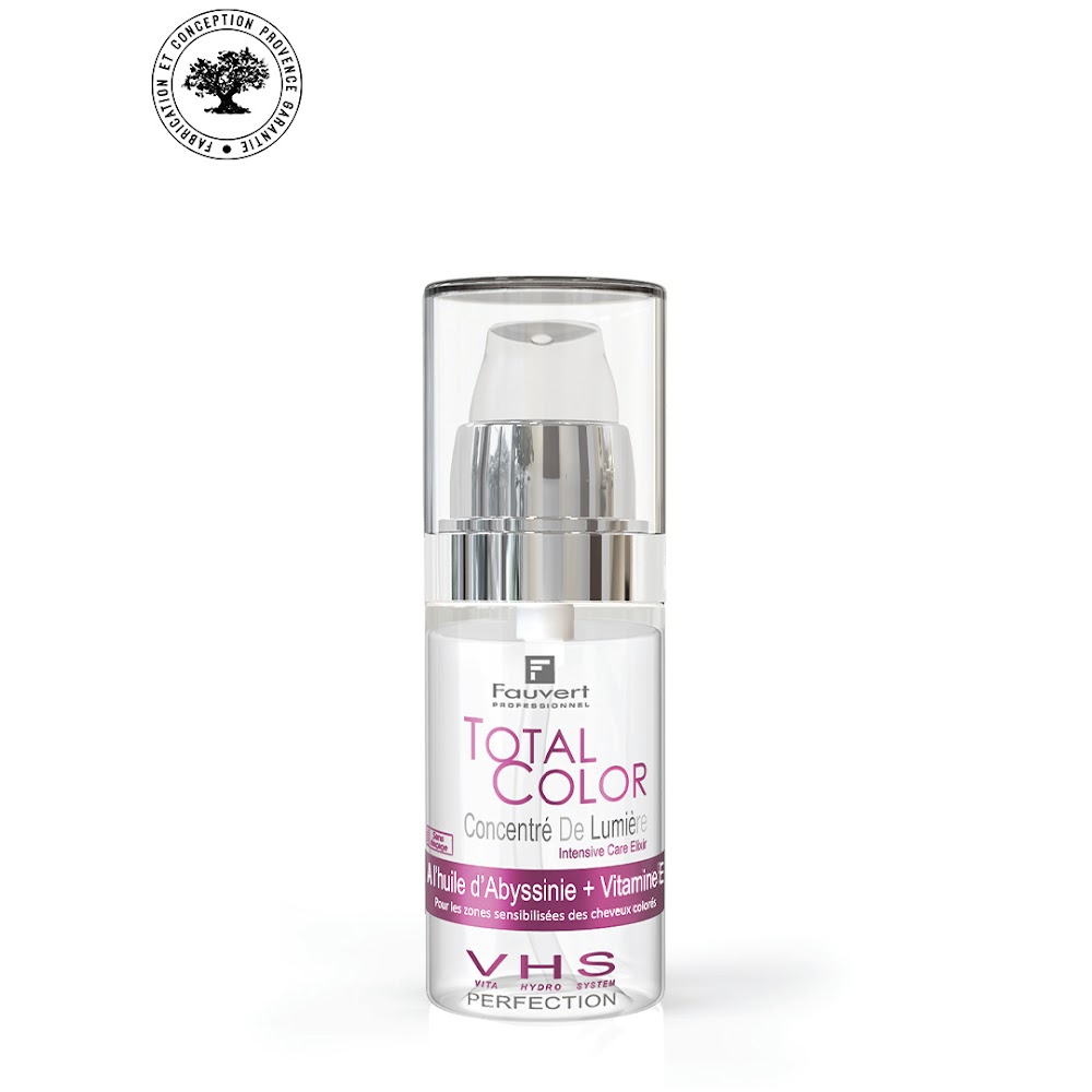 En touche de finition, après le rituel Total Color et avant le coiffage, le Concentré Soin de Lumière constitue un soin d’exception sans rinçage, à l’action ciblée sur les zones sensibilisées et abîmées. Ce sérum à l’odeur fruitée dépose un voile de brillance sur la chevelure, protège l’éclat de la couleur, tout en protégeant les pointes et longueurs de la chaleur et des agressions extérieures.
